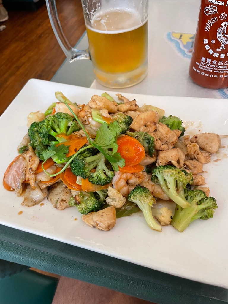 I wish I knew what this dish was called (my bad for not asking). It was perfect. From the second I walked in the door, I felt like the staff read me like a book. Not only did they have a light beer ready for me, but they knew I’d enjoy a sloppy plate of noodles with a few different kinds of protein and veggies covered in some spicy, but not overpowering Asian sauce.